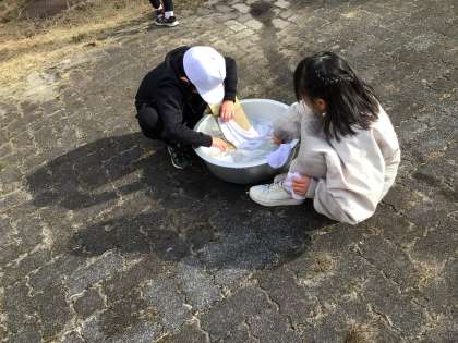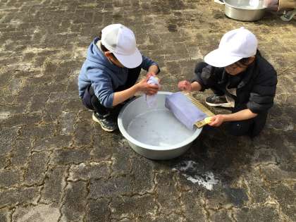 ふりかえりでは、「昔の人は大変だ」「桃太郎のおじいさんよりおばあさんの川への洗濯の方が大変だと思う」などと感想を言い合いました。