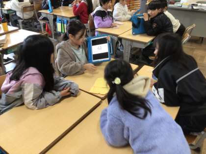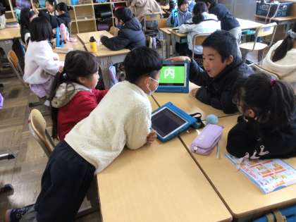 国語「漢字の組み立てと意味」の学習の様子です。漢字の部首について漢字スキルや教科書で調べ、部首クイズをパワーポイントで作成しました。グループや学級でクイズ大会をしました。