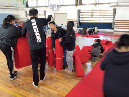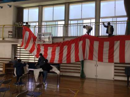 4、5年生は卒業式の準備です。 4年生は初めての作業です。