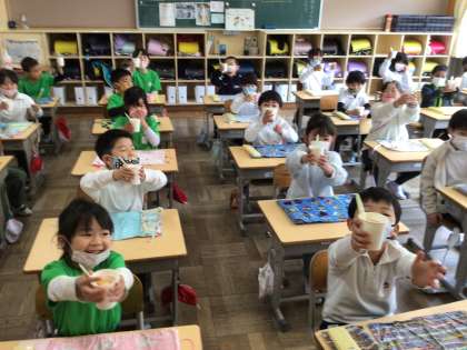 3/21 お楽しみ会2 (1年) 公開日 2025/03/22 更新日 2025/03/22 第1学年の様子 お楽しみ会後半は、クッキングです。「フルーツポンチ」を作りました。1年間の頑張りにみんなで乾杯して、美味しくいただきました。