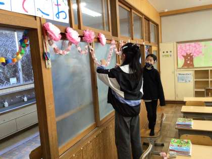 1年生の教室も綺麗に飾り付けました。
