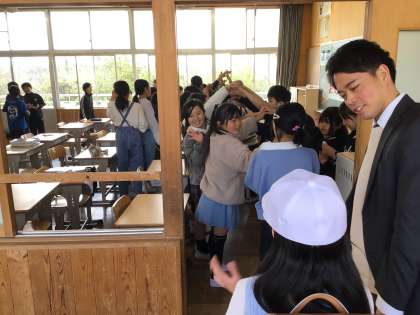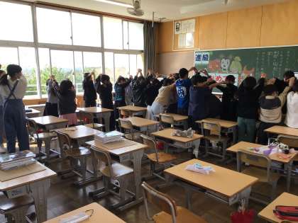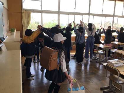 5年生全員でトンネルを作り、転入生をお迎えしました。賑やかなスタートになりました。