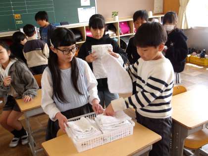 初日から大きな声のあいさつに始まり、丁寧に教科書に名前を書いています。ぞうきんを集めてもらうと、きれいにたたんでそろえてくれました。さようならのあと、教室を見てみると全員いすをしまっていました。初日からほめるところがたくさんありました。1年間一緒に頑張りましょう!