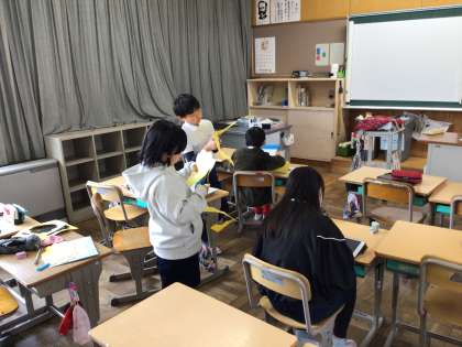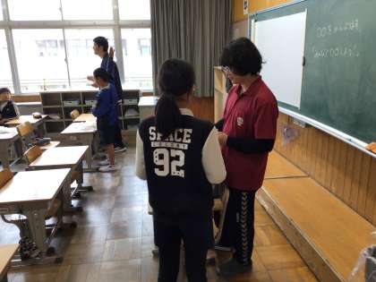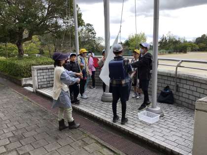 運営委員会は国旗、校旗の掲揚のやり方を確認しています。環境委員会と健康委員会はさっそくお仕事を任されていました。