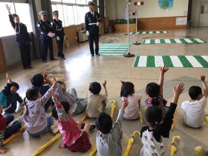 4/18 交通安全教室その1(1年) 公開日 2025/04/19 更新日 2025/06/20 第1学年の様子 藤岡地区の交通指導員さんに来校していただき、交通安全教室を行いました。まず、信号の意味や3つの約束を学習した後に行った「正しく横断歩道を渡っているのは誰かな」クイズは、全員正解でした。 1年