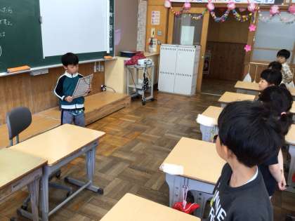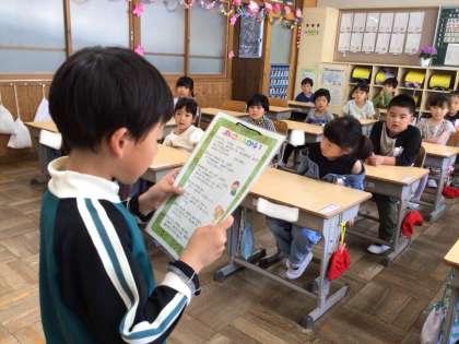 今日から日直の仕事をスタートしました。名簿番号順に交代してやっていきます。朝の会の司会や授業の始めと終わりの号令を大きな声で上手に言えました。