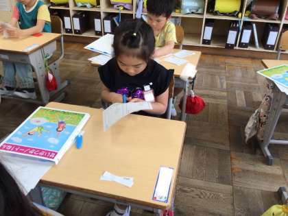 4/21 生活「名刺を完成させよう」(1年) 公開日 2025/04/21 更新日 2025/06/20 第1学年の様子 クラス全員の子と名刺交換ができるように、先日書いた名刺をコピーしました。今日は、ハサミで切って完成させました。次の生活の授業で名刺交換しながら自己紹介をします。 1年