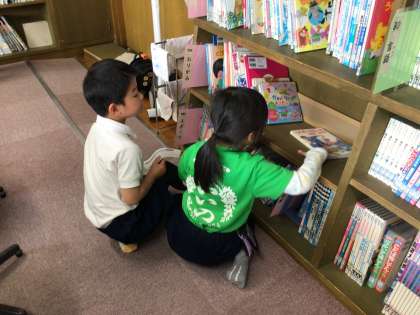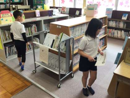 4/18 「としょかんへ 行こう!」 公開日 2025/04/21 更新日 2025/04/21 第2学年の様子 年度はじめなので、図書館の使い方について司書さんと改めて一緒に確認しました。図書館の本が種類ごとに分けられて配置されていることを知り、お題の本がどこにあるか探しました。今年はみんなでたくさん本を読む一年にしたいと思っています。 2年