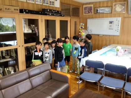 と1年生が2年生のお手本を真似て、しっかり挨拶できました。