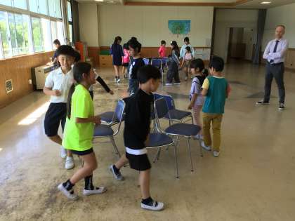 椅子取りゲームも1年生が楽しめるよう配慮していました。 立派な上級生です。