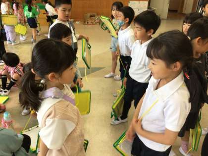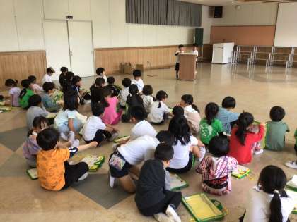 待ちに待った学校探検です。はじめに、同じ班の1・2年生で自己紹介をしました。司会の人たちがいい活躍ぶりを見せてくれました。