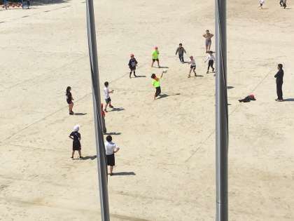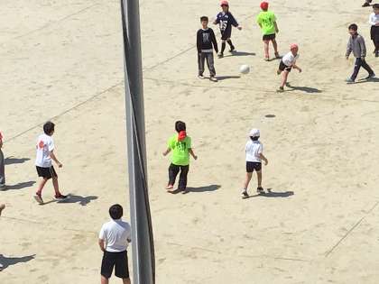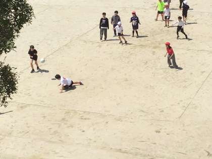 午前業間に多学年でドッジボールをしていました。