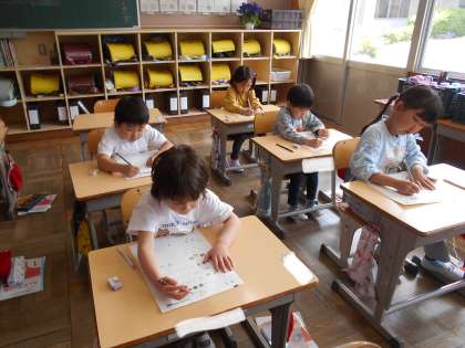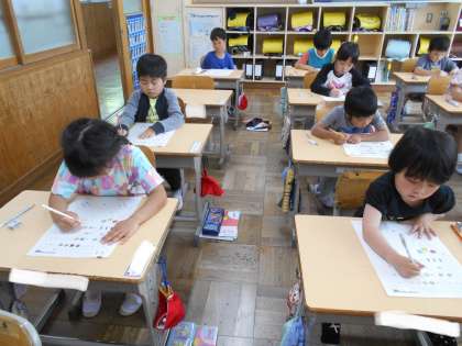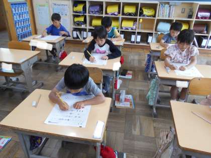1年生初めてのテストです。みんなドキドキしていましたが,終わったら「簡単だった」との感想がたくさん聞かれました。