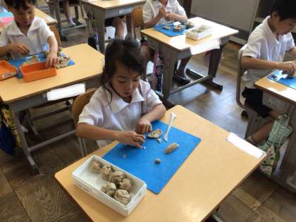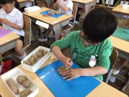 5/14 図工「ねんどでごちそうなにつくろう?」その1(1年) 公開日 2025/05/14 更新日 2025/06/20 第1学年の様子 前回の図工で柔らかくした粘土を使って、豪華なご馳走をつくりました。伸ばしたり、叩いて広げたり、細かくちぎったり…思い思いのご馳走ができました。 1年