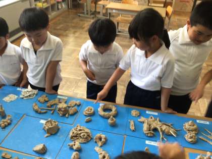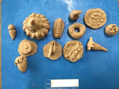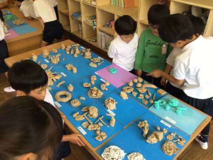 5/14 図工「ねんどでごちそうなにつくろう?」その2(1ねん) 公開日 2025/05/14 更新日 2025/06/20 第1学年の様子 完成した粘土のご馳走を並べて鑑賞会をしました。美味しそうなご馳走ばかりで、お腹が空いてきてしまいました。 1年