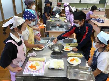 盛り付けて実際にみんなで食べました。先生たちにもご馳走してくれました。