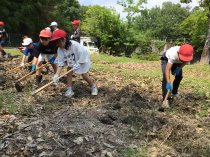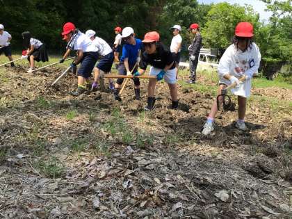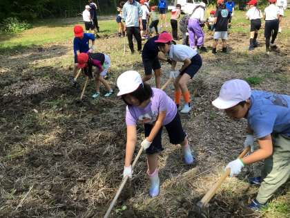 くわやスコップを使ってたっぷり2時間田んぼを耕しました。