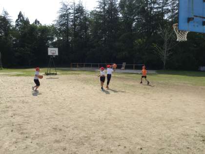 外スポーツもバスケットボールです。 アイシンから寄付していただいた青いボールを使っています。