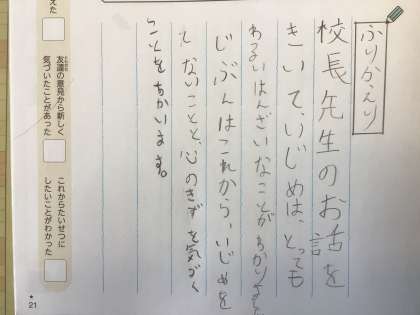 「心の傷」というキーワードがが多くの子どもの心に残ったようです。
