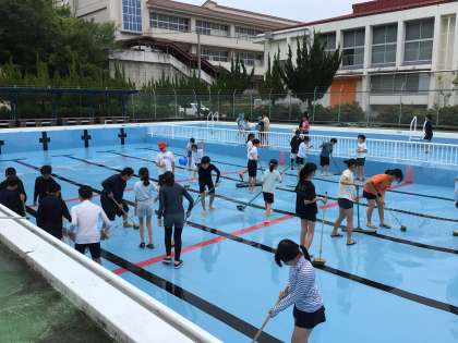 前回よりもさらに手際よく、全員で協力して、プールをきれいにしました。