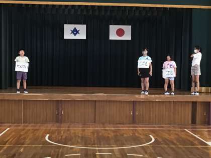 飯野小学校の児童を対象としたアンケートの結果を、劇とクイズで紹介します。