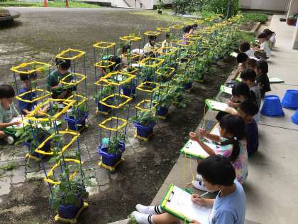 6/25 1年 生活 あさがおの観察 公開日 2025/06/25 更新日 2025/06/25 第1学年の様子 支柱を立てたあさがお、またどんどん伸びています。つぼみを見つけた子、葉っぱの大きさを自分の手を比べる子、様々な気づきがありました。 1年