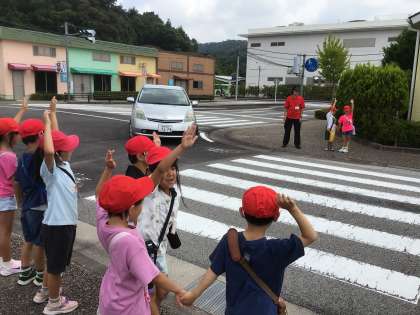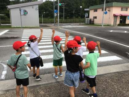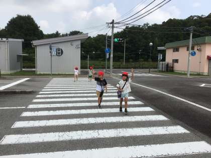 7/4 1年 交通安全教室 その4 公開日 2025/07/04 更新日 2025/07/04 第1学年の様子 その後、交通安全教室学習センターの中の道路を歩きました。ペアで、写真の場所まで歩いていきます。途中、歩道を歩いたり、横断歩道を渡ったり、室内の学習で教えてもらったことを生かして交通安全に気をつけながら歩きました。 1年