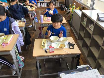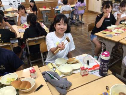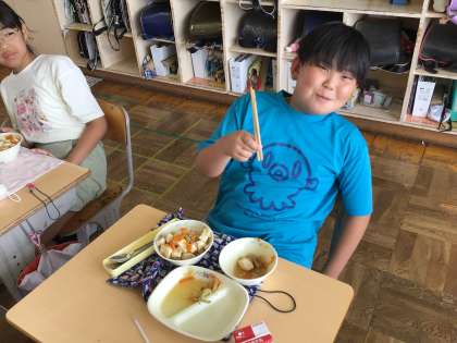 作ったはしで給食を食べている子もいました。