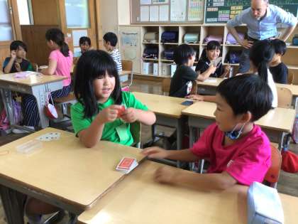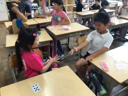 トランプを使ったゲームで大盛り上がりです。