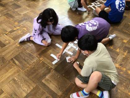 夏休み前までの学習を振り返り、グループでインタビューをしながらゲームをしました。