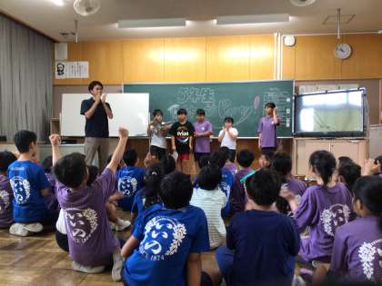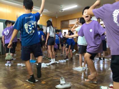 夏休み前パーティーです。それぞれのチームで出し物を考えてきました。