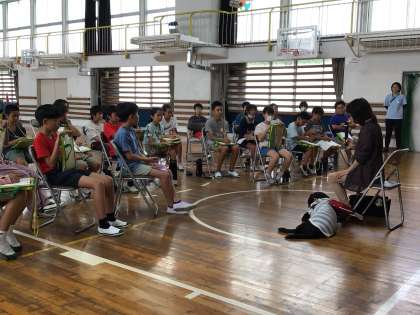 盲導犬を利用している方に盲導犬の話を聴き、盲導犬と歩く様子真近で見ることができました。