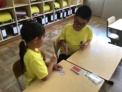 9/26 1年 久しぶりの外国語活動 公開日 2025/09/28 更新日 2025/09/28 第1学年の様子 ブライアン先生との外国語活動です。今回は数字。歌を歌いながら体を動かしたり、トランプでゲームをしたりして、楽しみながら英語での数字の言い方を学びました。 1年