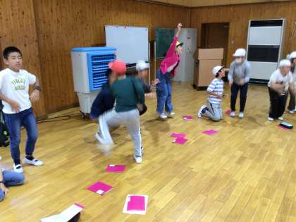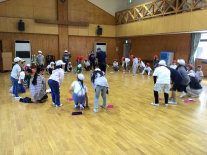 10/2 5年 野外活動4 公開日 2025/10/02 更新日 2025/10/02 校長室から レクリエーションの時間です。 全員が輪になり順番に数字を数え、3の倍数になれば、全員で声を出して立ち上がるゲームです。 とても単純なゲームですが、大盛り上がりでした。 校長