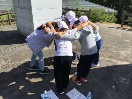 9番のポストでは、円陣を組んで「頑張るぞ!」「オーッ!」のかけ声をします。