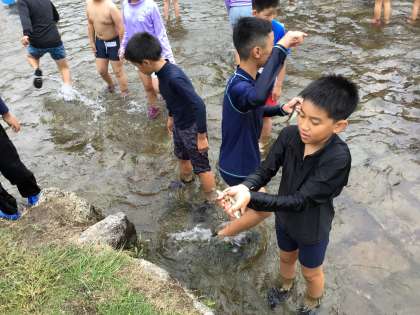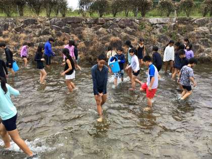 アユのつかみ取りです。 全員で50匹のアユを捕まえます。