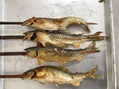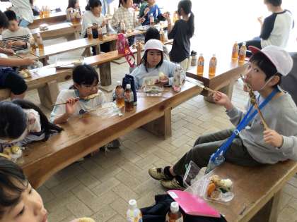 アユが焼けました。 お弁当と一緒にお昼ご飯です。 野外活動も終わりに近づいてきました。