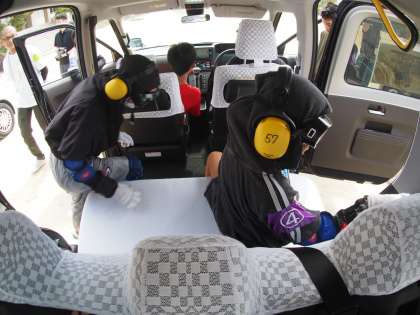 10/2 6年 トヨタ自動車と連携した高齢者疑似体験その2 公開日 2025/10/05 更新日 2025/10/05 第6学年の様子 トヨタ自動車のご厚意でJAPAN TAXI車両を2台。新型AQUAを1台用意していただき、高齢者の体験装具を付けた状態での乗降や、カードでの支払い体験をしました。 6年