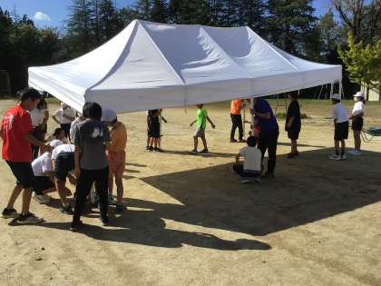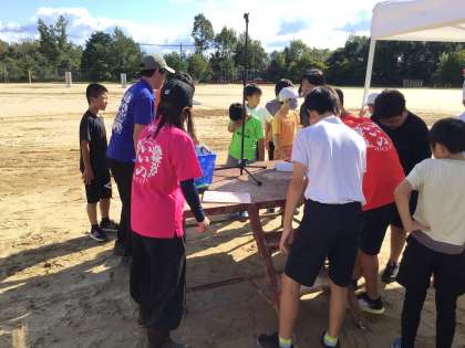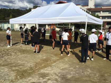 6年生は会場作りです。 運動場をならすのが大変な作業でした。