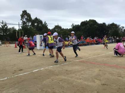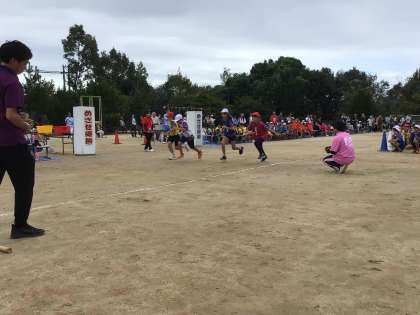 運動会の一番の山場である高学年リレーです。
