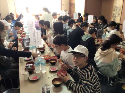 法隆寺到着です。 昼食は釜飯弁慶、味噌汁 漬物、熊野古道の水です。