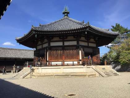 夢殿です。 こちらも運良く貸切です。 ガイドさんがとても丁寧に説明してくださいました。