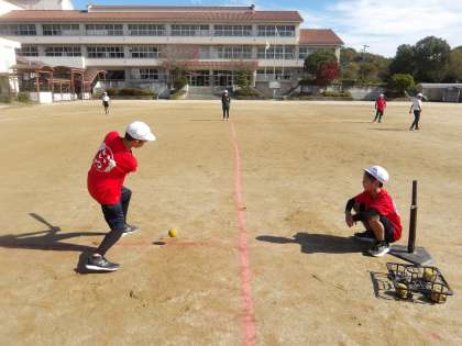 11/6 6年 ティーバッティング 公開日 2025/11/06 更新日 2025/11/06 第6学年の様子 秋の体育はベースボール型ゲームです。 まずティーバッティングで楽しみました。慣れてきたのでトスしたボールのバッティングにも挑戦しました。 6年