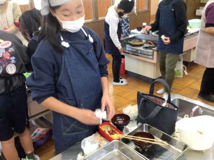6年生が調理実習で自分の弁当を作りました。