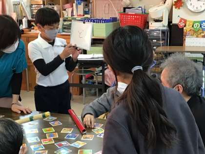11/19 6年 ふじのさと交流 2組2回目 その1 公開日 2025/11/19 更新日 2025/11/19 第6学年の様子 午後からふじのさとに行きました。 1回目の反省を生かして。高齢者と交流です。 かるた、玉入れ、あやとりをしています。 6年
