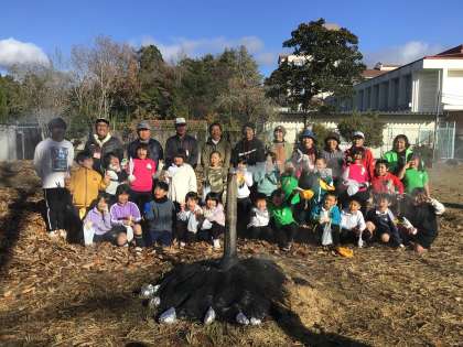 給食の時間に雨が降りましたが、その後太陽が顔を出し、無事焼き芋パーティーが屋外で実施できました。ボランティアの方々が雨の中準備をしてくださり、おいしい焼き芋を食べることができました。子どもたちは大喜びです。