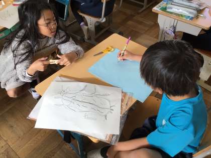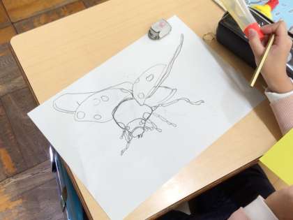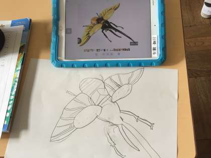今日は昆虫の紙はんがに挑戦中です。