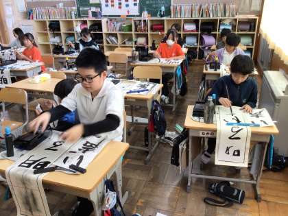 12/11 4年 書初め練習2 公開日 2025/12/11 更新日 2025/12/11 校長室から 2部屋に分かれてゆとりのある空間で練習しました。 書き方が分からない文字について、ボランティアの先生に質問していました 校長 4年