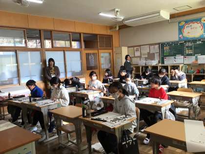 12/12 6年 書き初め練習 公開日 2025/12/12 更新日 2025/12/12 第6学年の様子 今日は書写ボランティアの先生の指導日でした。 一画一画、筆の入り、太さ、長さを細かく教えていただきました。 6年