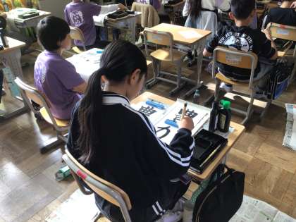12/12 5年 書き初め 公開日 2025/12/12 更新日 2025/12/12 第5学年の様子 書写ボランティアの方による書き初めの授業です。一文字ずつ気をつけるポイントを教えてもらいます。 5年